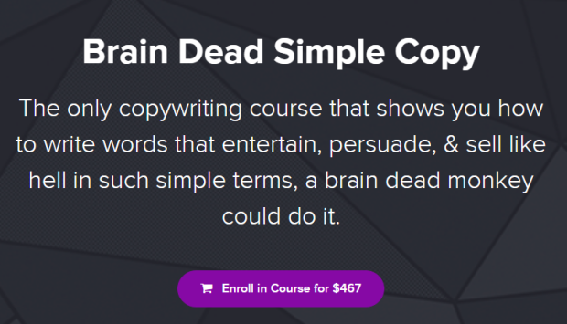 The only copywriting course that shows you how to write words that entertain, persuade, & sell like hell in such simple terms, a brain dead monkey could do it.