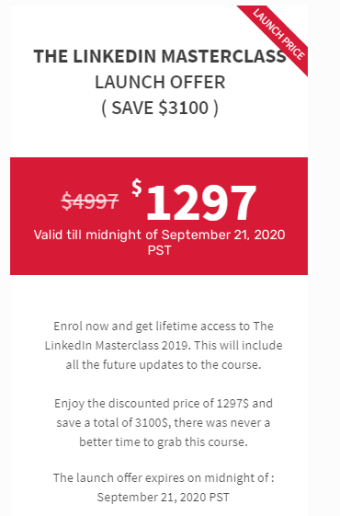 – LAUNCH SPECIAL BONUS : How to get LinkedIn Sales Navigator and the LinkedIn Automation tool ( the one i will be teaching in the course ) for FREE for Life. This bonus is valid during the Launch phase only.