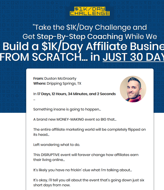 Duston MacGroarty – Build A $1K/Day Affiliate Business UP1 Download