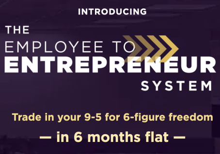 Employee to Entrepreneur is a simple, proven, step-by-step system that will show you how to build your online business and virtually replace your corporate income, ultimately freeing you from that jail cell you call a job and giving you the freedom to live the life you want. #aboutdamntime