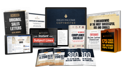 The Complete 7 Week High-Income Copywriter™ Certification Program – This program is the fastest, easiest way to become a highly paid and in-demand High-Income Copywriter™ – even if you have no experience, degree, or even if you speak broken English like me.