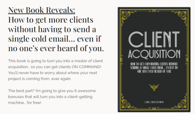 It shows a simple system you can use to repeatedly get copywriting clients that you absolutely love working with… without having to send a single cold email.