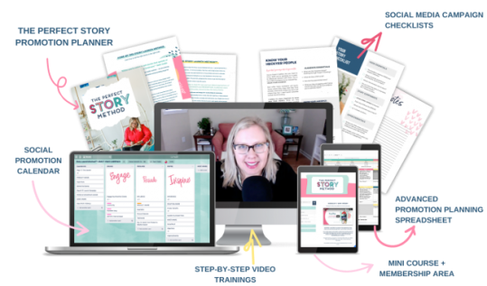 IS A SOCIAL MEDIA TOOLKIT FILLED WITH A WORKSHOP, STORYTELLING PROMPTS, AND A PROJECT MANAGEMENT SYSTEM TO HELP YOU KICK-START YOUR SOCIAL MEDIA PROMOTION CALENDAR IN JUST AN AFTERNOON
