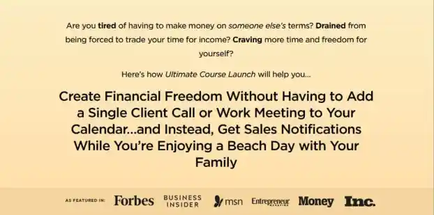 - The #1 “secret” to making more course sales every time you launch. (Hint: It’s the same reason football players study their games.) I’ll also give you my simple tool for analyzing every aspect of your “launch play” so you can exponentially improve each subsequent launch. This is how I was able to scale so quickly from $8K to $100K to $800K in sales…in less than a year