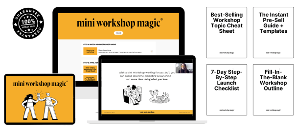 - Mini Workshop Magic training: step-by-step video to help you get started & get people on a waitlist for your workshop within 24 hours