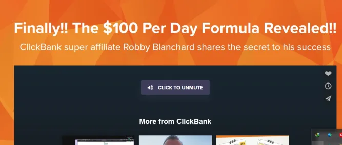 This is why I’ve teamed up with the global leader in affiliate marketing – ClickBank–to show you my exclusive $100/day formula.
