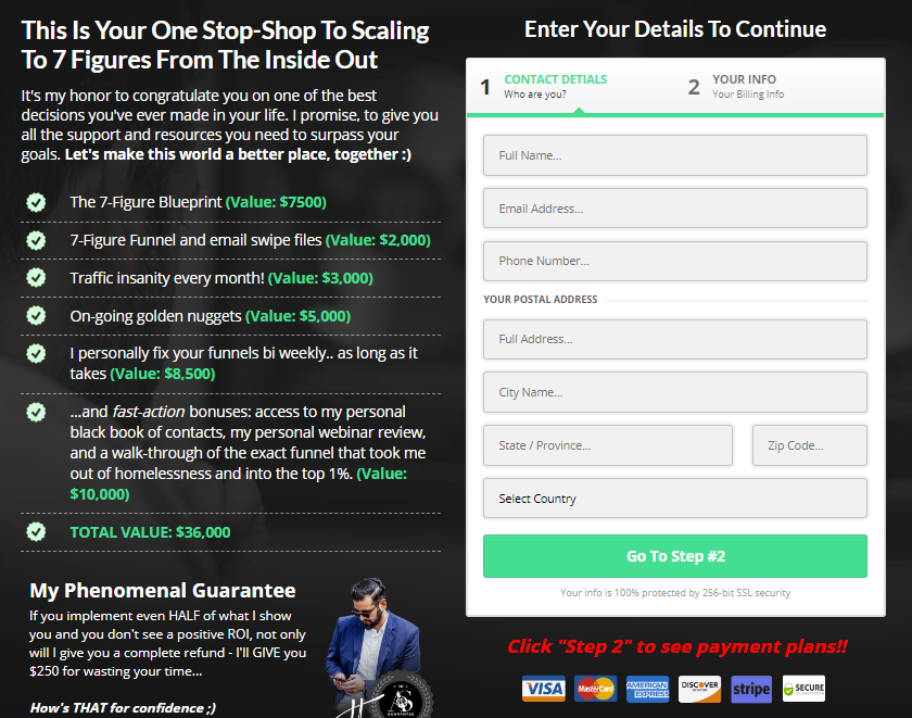 …and fast-actionbonuses: access to my personal black book of contacts, my personal webinar review, and a walk-through of the exact funnel that took me out of homelessness and into the top 1%. (Value: $10,000)