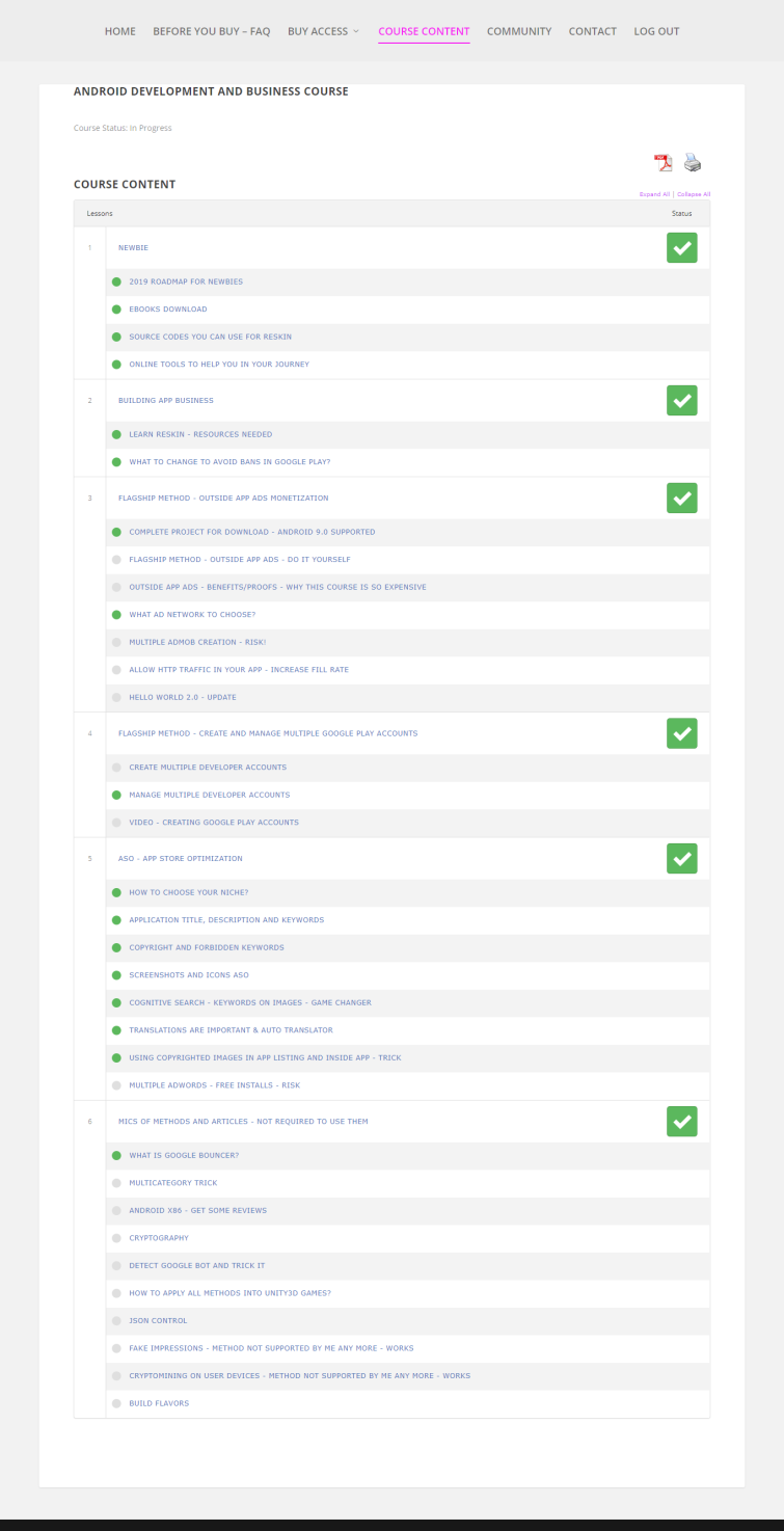 I am Luke, indie Android developer but more a businessman. I am making money from Android development and Android Market (Google Play) for 2011. I earned a lot but also not amazing numbers. Currently my total earnings from Google Play are arround $4mln. Not big but also not small number, especialy I am working alone and not hiring any people. My way is different – publish a lot of apps in Google Play as much I can and defeat Google Play algorithms. I am working against rules and Google Play policy but never breaking any law. Methods presented in this course are legal but sometimes not moral. You can ask me and yourself, why I am sharing my knowledge? Course is expensive, money is money. Google cannot destroy these methods because they would need to invent Android from scratch. There are 180 000 Android Developers in Google Play. I think, few sales will not make me any competition. People are also very lazy, I figured out that maybe 1% of user wants to hard work and learning from my course. They buy it and forget.