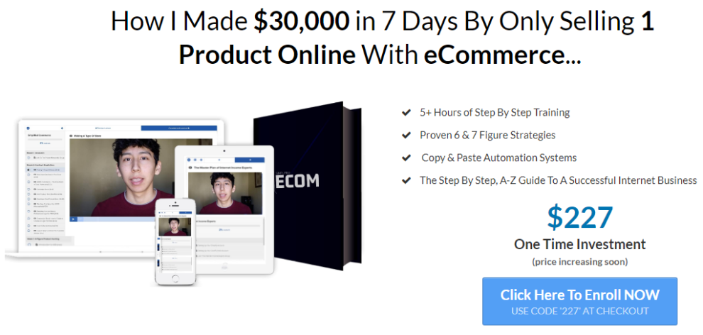 You will learn how to choose a profitable niche, how to do market research, how to create your website, how to get approved with suppliers, how to optimize for conversions, how to get traffic, and how to automate your new online business.