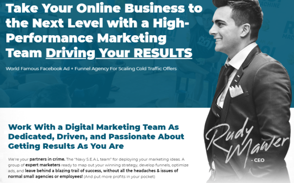 We’re your partners in crime. The “Navy S.E.A.L team” for deploying your marketing ideas. A group of expert marketers ready to map out your winning strategy, develop funnels, optimize ads, and leave behind a blazing trail of success, without all the headaches & issues of normal small agencies or employees! (And put more profits in your pocket)