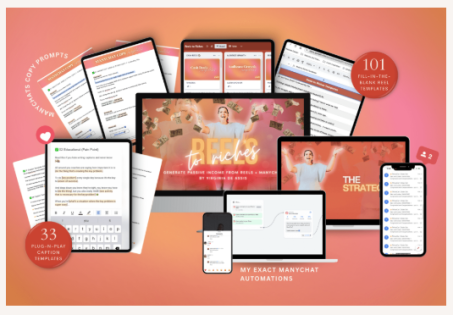 • 101 High-Converting Reel Templates to generate cash, not just views. Easy to use and no dancing required.