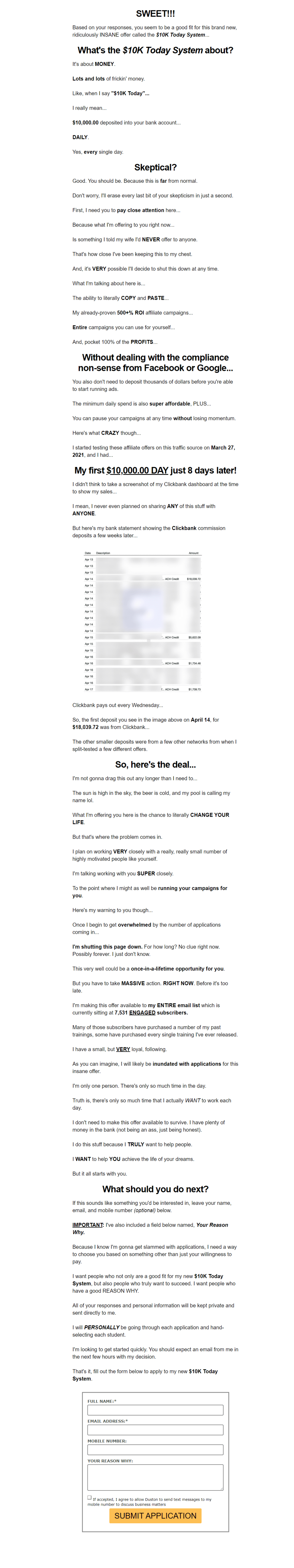 I didn’t think to take a screenshot of my Clickbank dashboard at the time to show my sales…