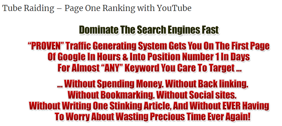 Tube Raiding $995 – Page One Ranking with YouTube Download