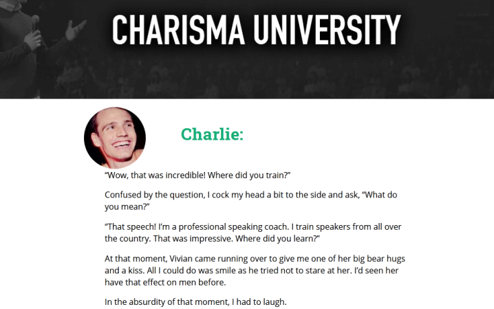 Charisma University is a 6 week step-by-step program designed to give you all the tools you need to take your charisma to the next level.