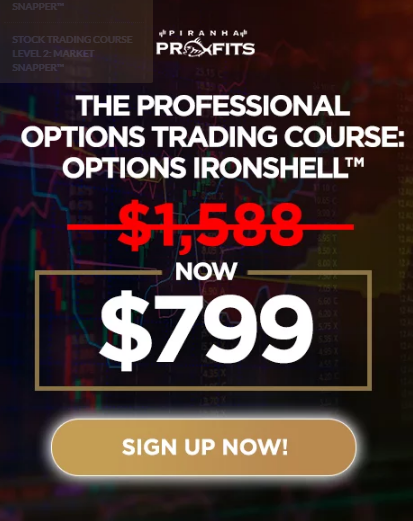 The Piranha Profits Options Trading Course is created for traders who want to generate more income from their trading account without being tied down by unpredictable market weather.